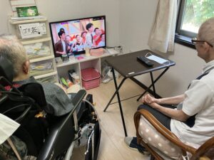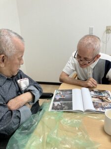 テーブルで写真アルバムを見ながら昔話に花を咲かせ、施設で出る食事をごちそうになり、お茶を飲みながら「NHKのど自慢」を観てゆっくりと過ごされました