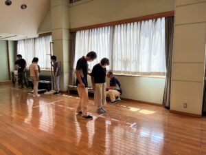 イスに座ってできる体操から、棒を使った体操など、色んな種類の体操を行いました。