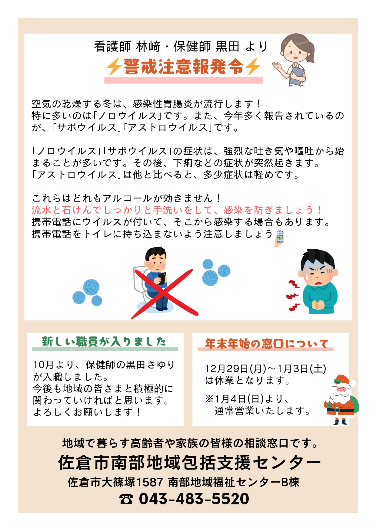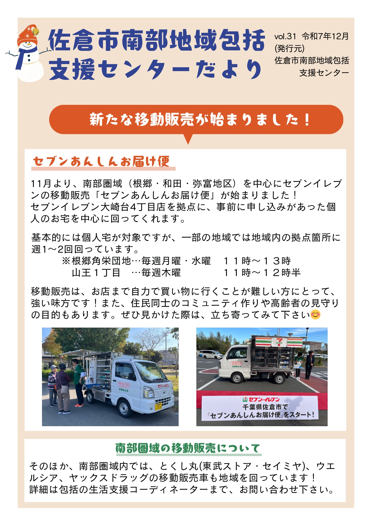 新たな移動販売「セブンあんしんお届け便」や包括の医療職からの感染症予防についての内容を掲載しています。