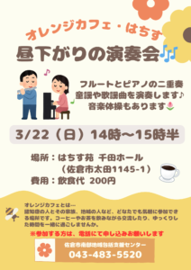 3月のオレンジカフェのお知らせです🌸
