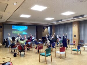 みんな大好き「憧れのハワイ航路」を元気に歌いながら体操しました!