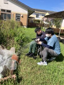 残り5つになった苗に利用者さんと一緒にせっせと水やりをしています