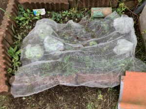 実際、初めに7つの苗を植え、ひとつひとつ大事にネットを被せていましたが、しばらくすると2つの苗が虫に食われてしまいました